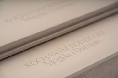 – napis na okładce zewnętrznej (np. „Wasze imiona „Dla ukochanych rodziców” lub inne), dostępne dwie linie tekstu