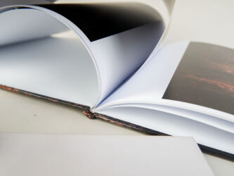 Sztywne, grube strony. Album rozkłada się na płasko.